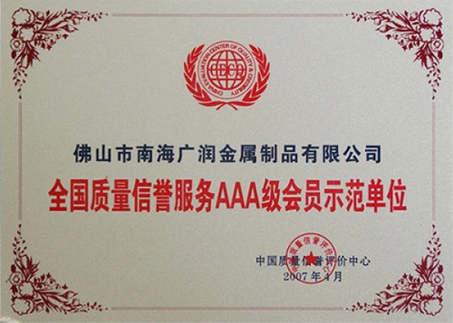 全國質(zhì)量信譽服務(wù)AAA級會員示范單位