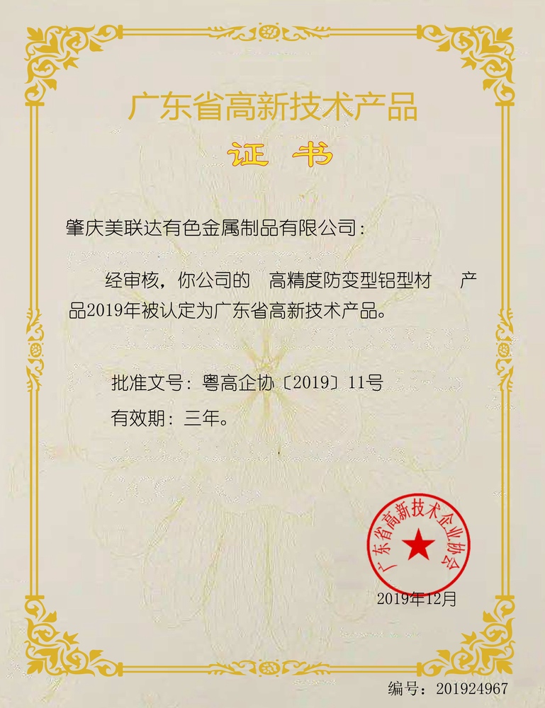 廣東省高新技術(shù)產(chǎn)品證書